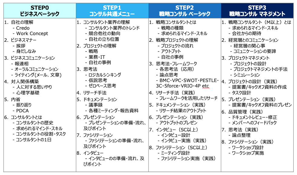 ストラテジーテック・コンサルティングは、社員一人一人の志向・スキル・経験に合わせたトレーニングメニューを提供可能